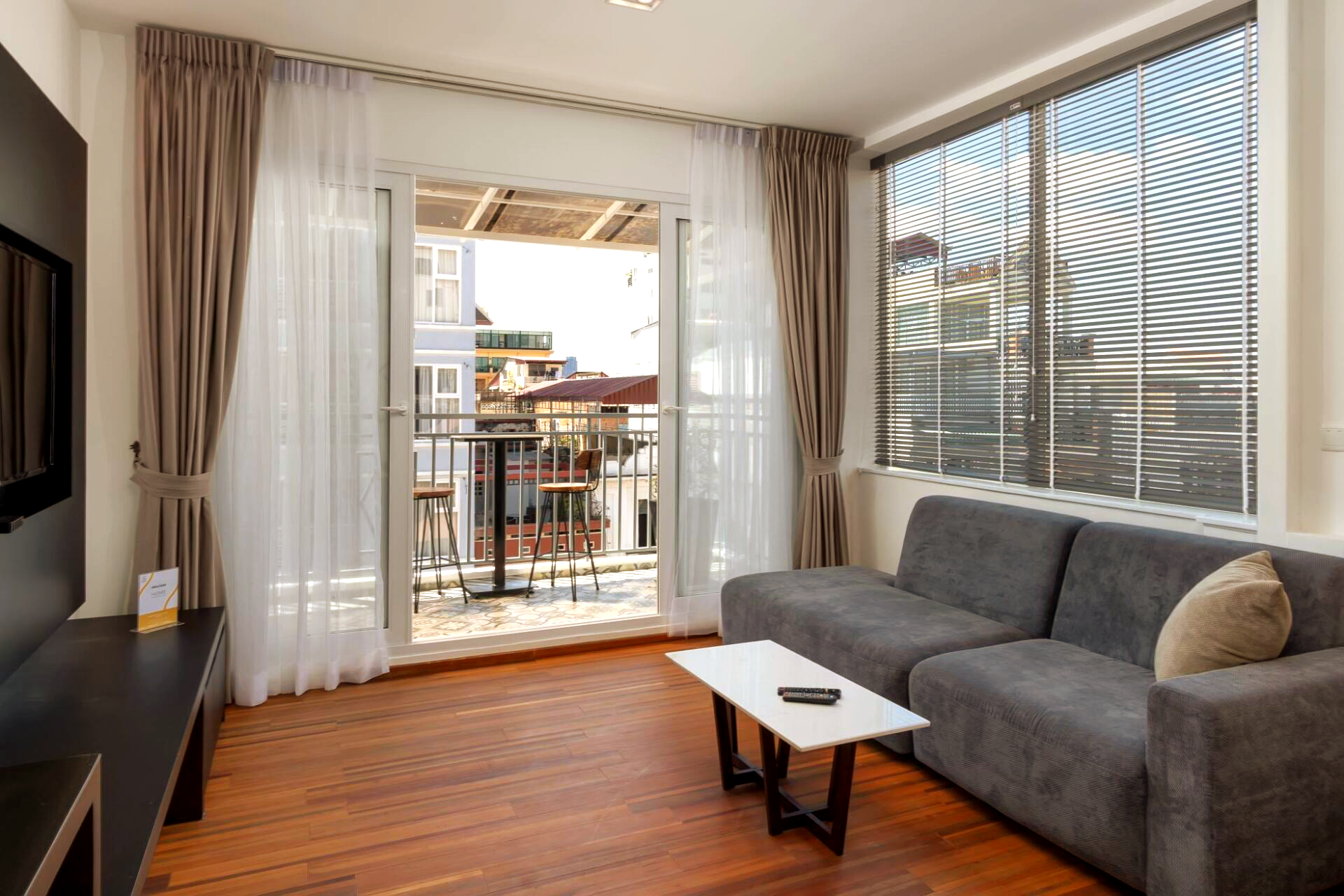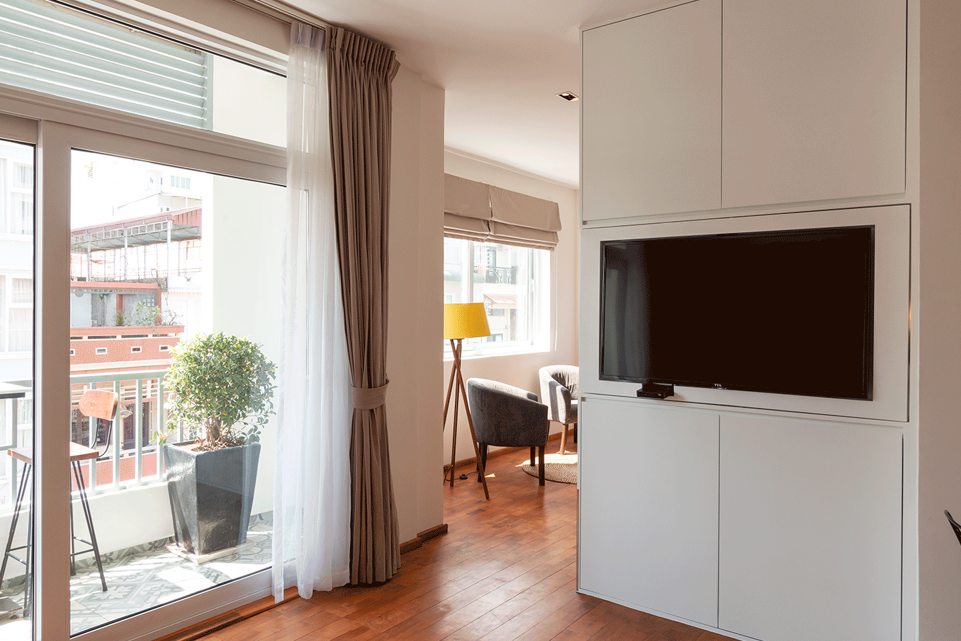 All of TAO's Residence accommodations aredesigned and equipped with the demanding travellers and business people in mind. Most rooms have a kitchenette consisting of a royal sized fridge, sink, microwave, plates, cutlery, water cooker, fully stocked minibar. Free French-press coffee and fresh tea making available. All our rooms and public area's offer free super-fast up to 100mb up/download Wi-Fi, individual air-conditioners, a desk and office chair, comfortable classy sofa's, 50-inch 70+ channel satellite TV, large and fully equipped bathrooms with rain showers. All balconies offer privacy and relax outdoor seating. Although we are right in the center of town, we have aimed to make the rooms as comfortable as possible by eliminating excessive sounds with double glazed windows and sound proof doors.
