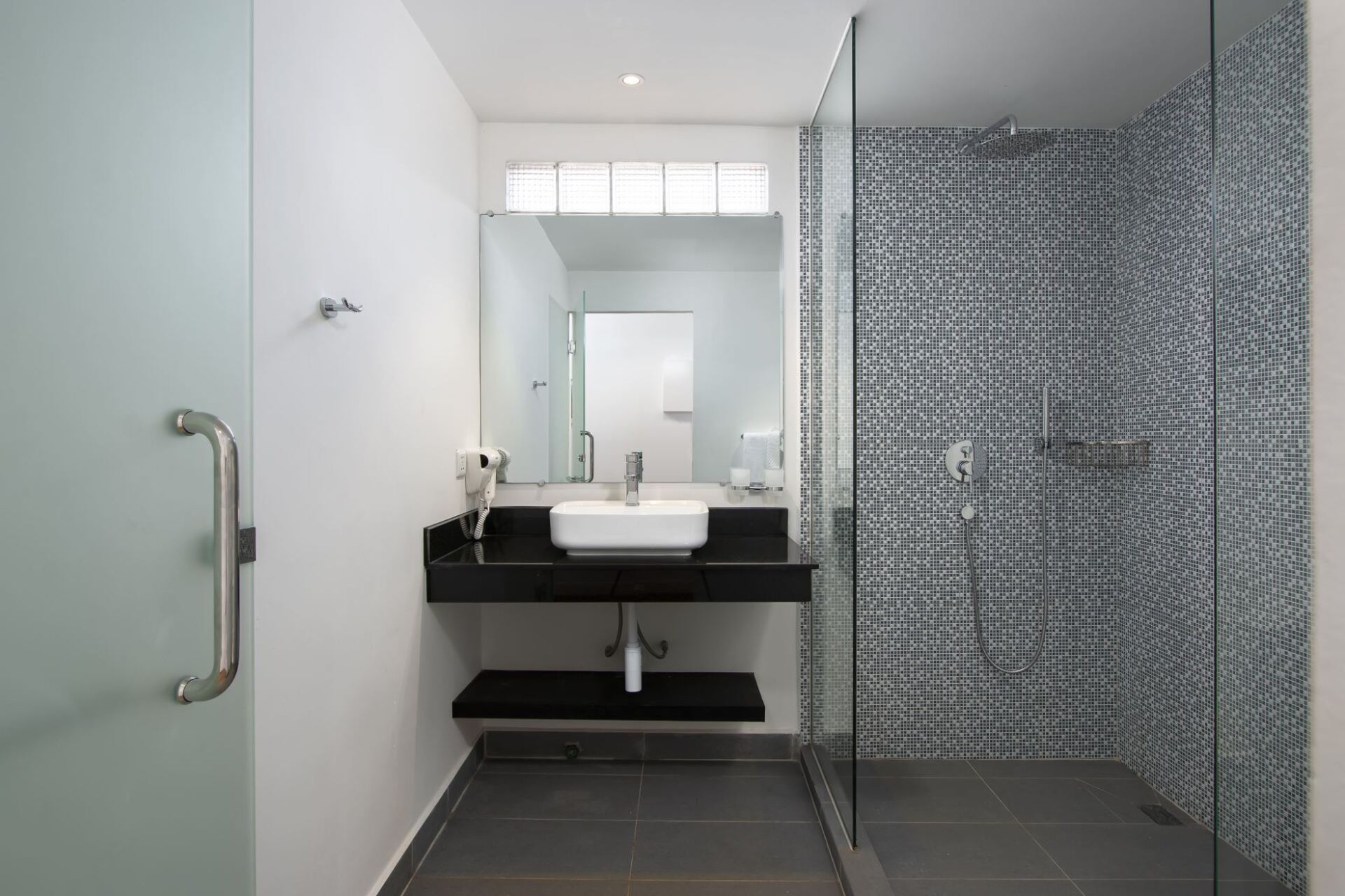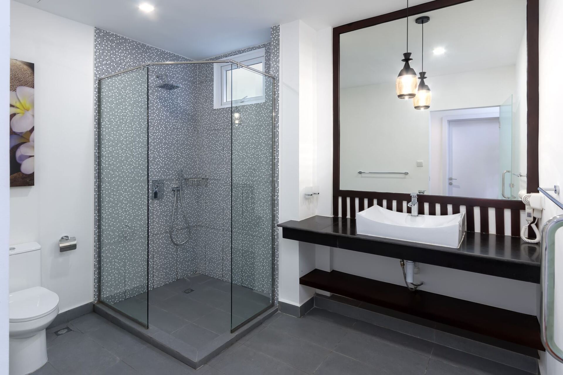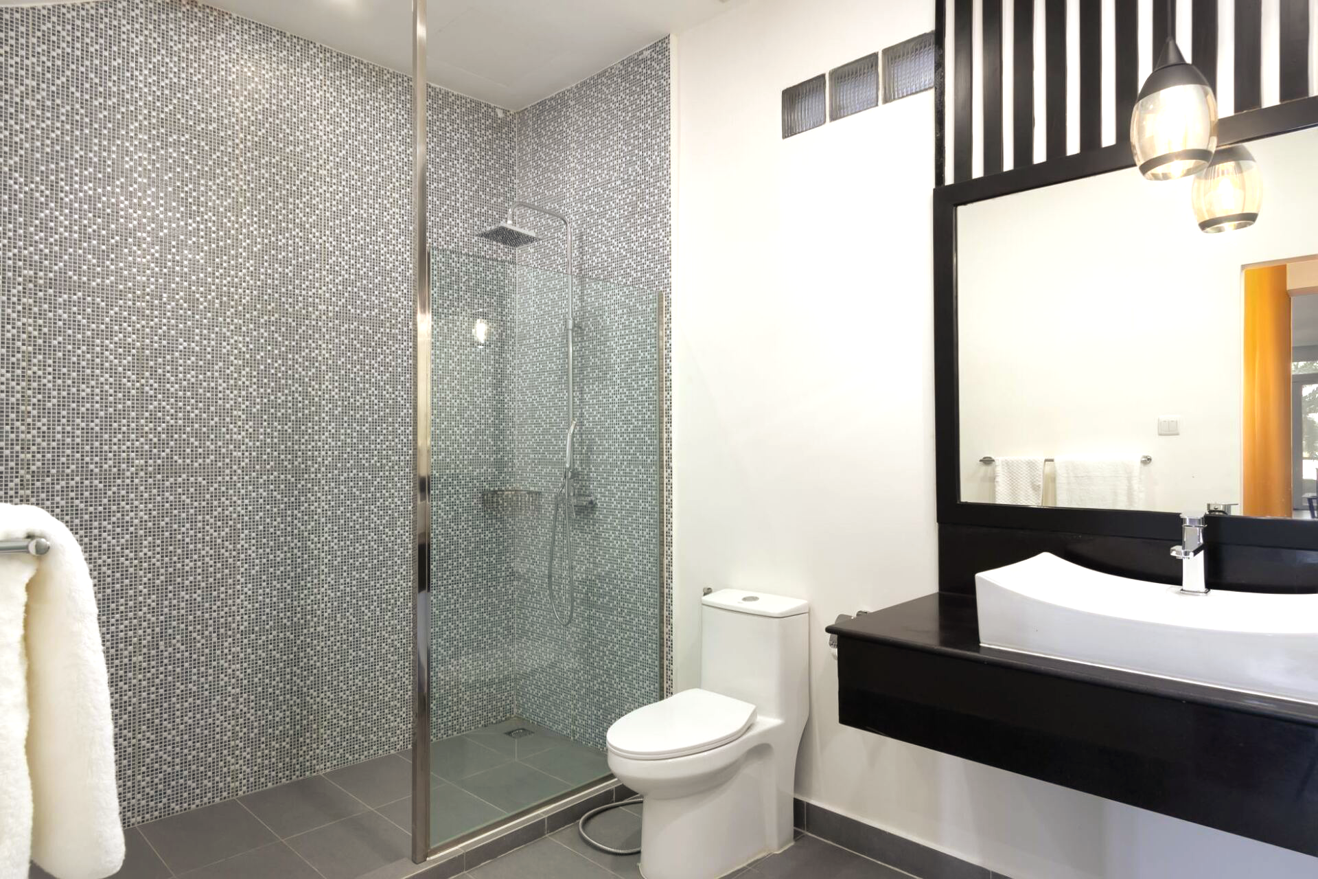 Big bathroom with bath & rain shower